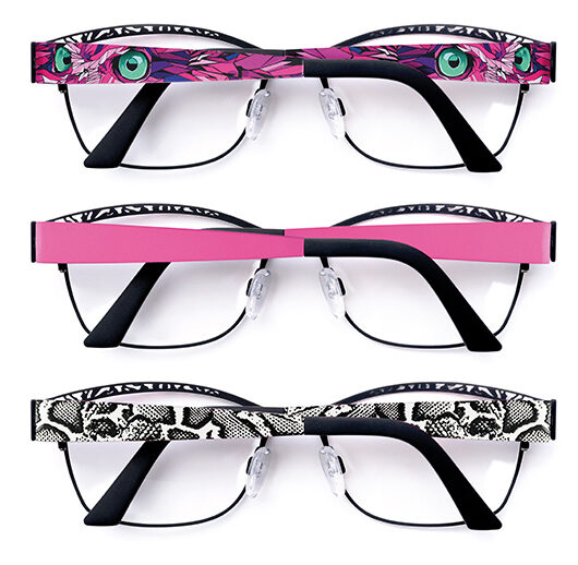 Eine Brille, viele Looks: Mit dem Eyemax- Wechselbügelsystem von Koberg & Tente lässt sich der Stil in Sekunden verändern.