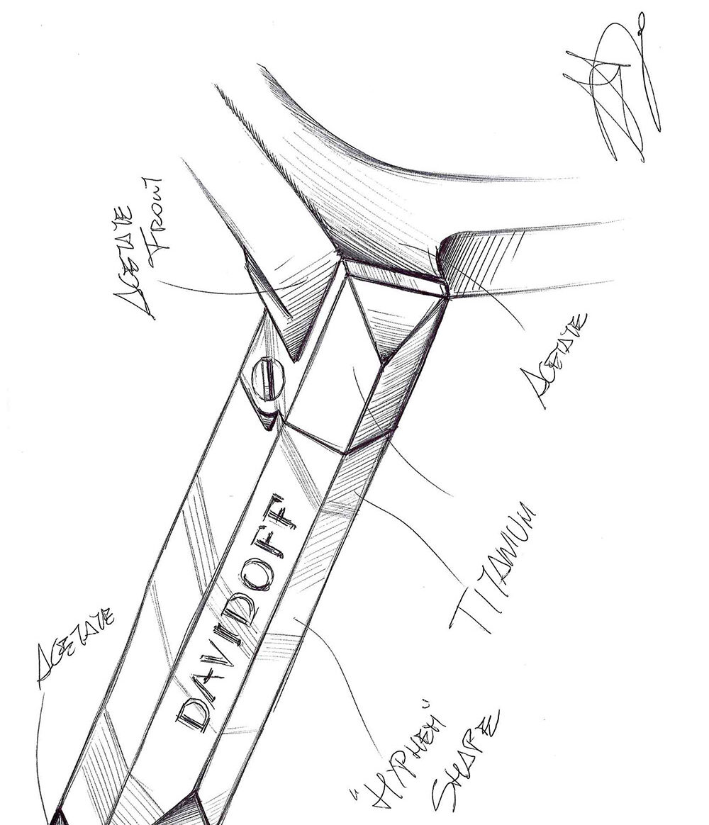 Ästhetische Kriterien, technische Performance und Funktionalität – jede einzelne Fassung muss alle Anforderungen erfüllen. Dies sei die Balance, auf die im Design zu achten ist, so Accorsi. „Wir versuchen, alle Aspekte zusammenzubringen und beziehen dabei auch die Vorstellungen des Hauses Davidoff mit ein. Wir analysieren die Markenessenz, überlegen, welche charakteristischen Elemente und Konzepte die Marke ausmachen. Auch die Kosten für die Produktion sind im Blick zu behalten. Last but not least spielen im Designprozess Erfahrung und persönlicher Geschmack eine Rolle. All diese ,Zutaten‘ müssen so dosiert werden, dass das Endprodukt unverkennbar zur Marke passt und für die Brillenträgerinnen und Brillenträger begehrlich ist.“