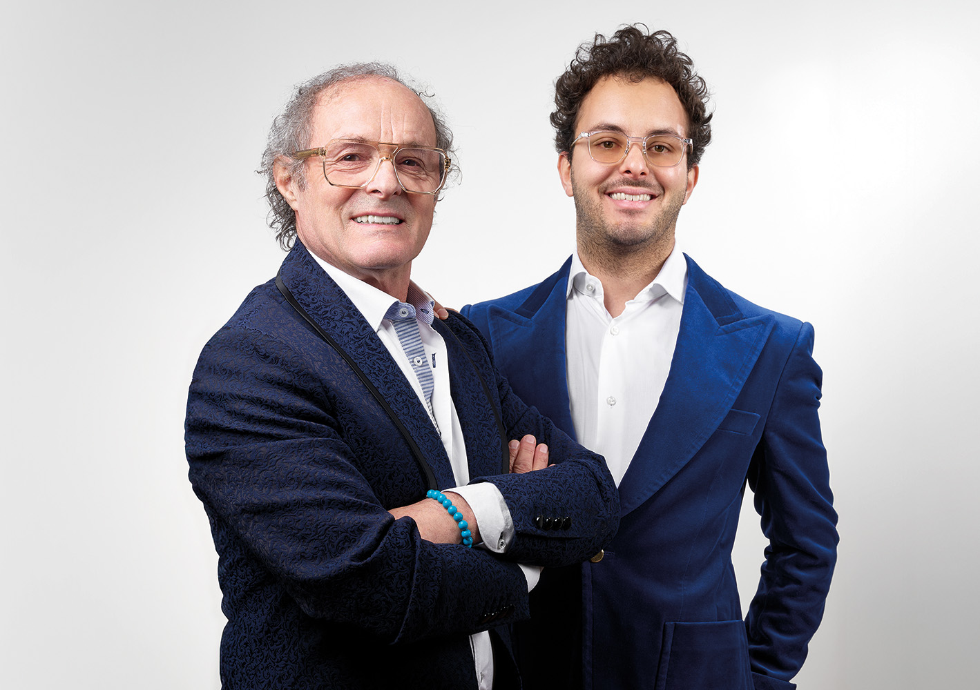 Gemeinsame Leidenschaft: Designer Enzo Sopracolle (links im Bild) und Sohn Mattia vertrauen auf „Made in Italy“. Fassungen und Sonnenbrillen der Cadoriner entstehen da, wo das Brillenhandwerk eine jahrhundertealte